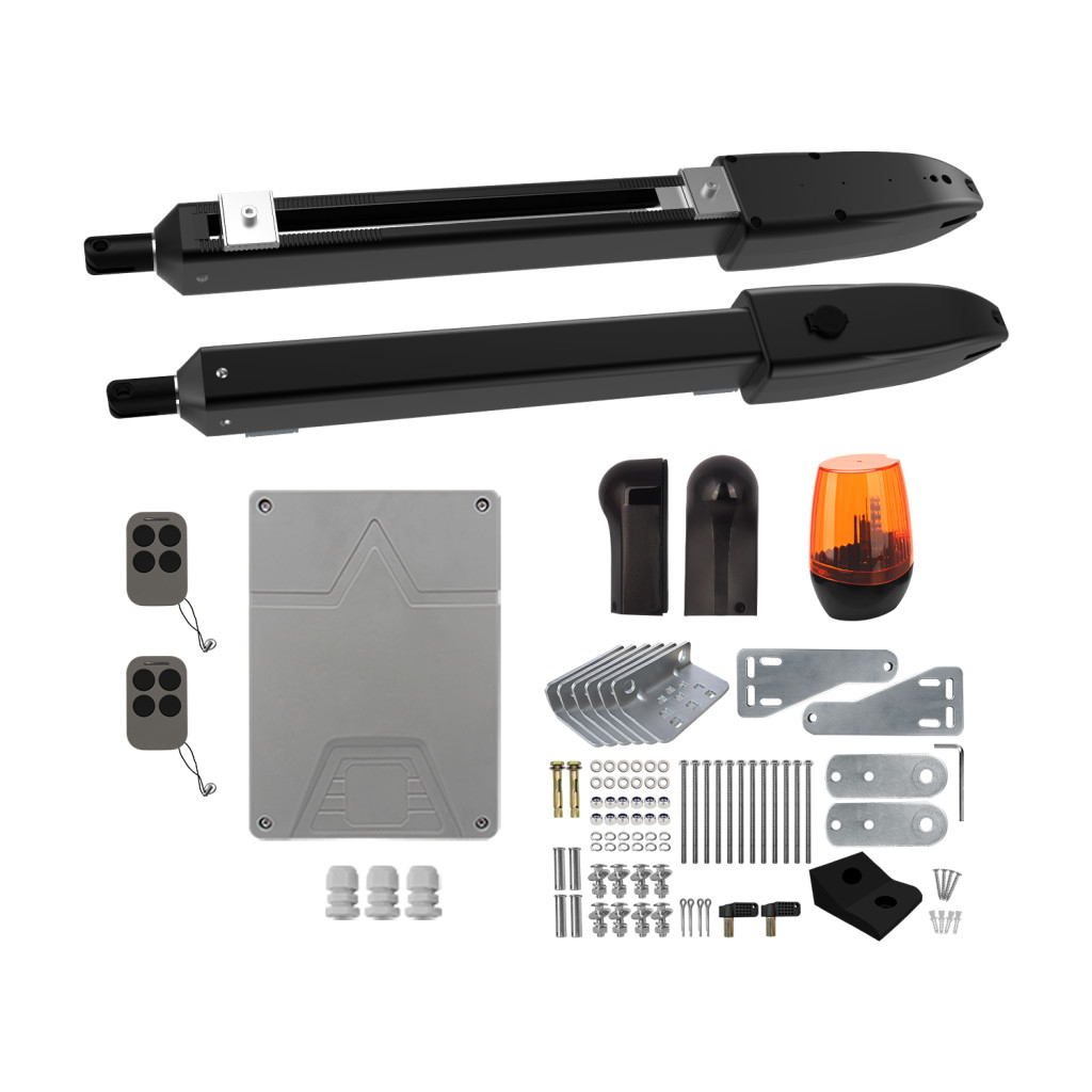 A rendszer távoli nyitási és zárási funkciókat kínál a mellékelt távirányítókon keresztül, lehetővé téve a felhasználók számára a hozzáférés vezérlését a jármű elhagyása nélkül. A vezérlés testreszabható úgy, hogy mindkét kaput egyszerre nyissa, vagy konfigurálható úgy, hogy mindegyik kaput külön-külön nyissa, ami hasznos gyalogos- vagy járműátkelőhelyek esetén. Ezenkívül támogatott az automatikus leállítás egy előre meghatározott időintervallum után, amely a tulajdonos preferenciái szerint konfigurálható. Biztonsági szinten a rendszer képes érzékelni az akadályokat a mozgási ciklus során, és leállítani vagy megfordítani a működést a károk vagy balesetek megelőzése érdekében.
